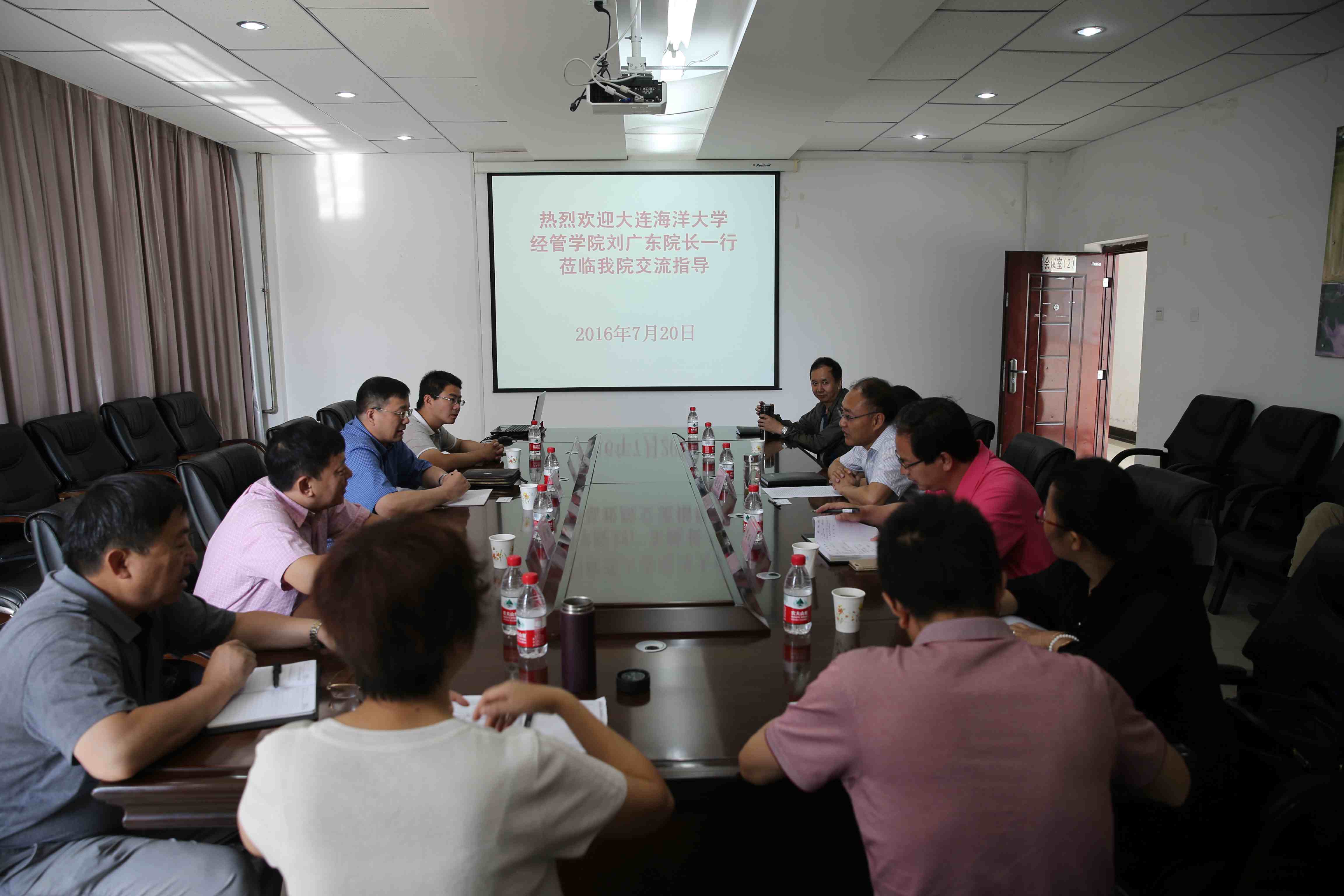 随后,刘院长简要介绍了大连海洋大学及经管VOID 的基本情况。双方就共同关心的领域专业建设、硕士点建设、本科教育教学质量、实践教学、人才引进与队伍建设、学分制改革、职称晋升、因材施教等进行了深入、广泛的交流与探讨,形成了共识。