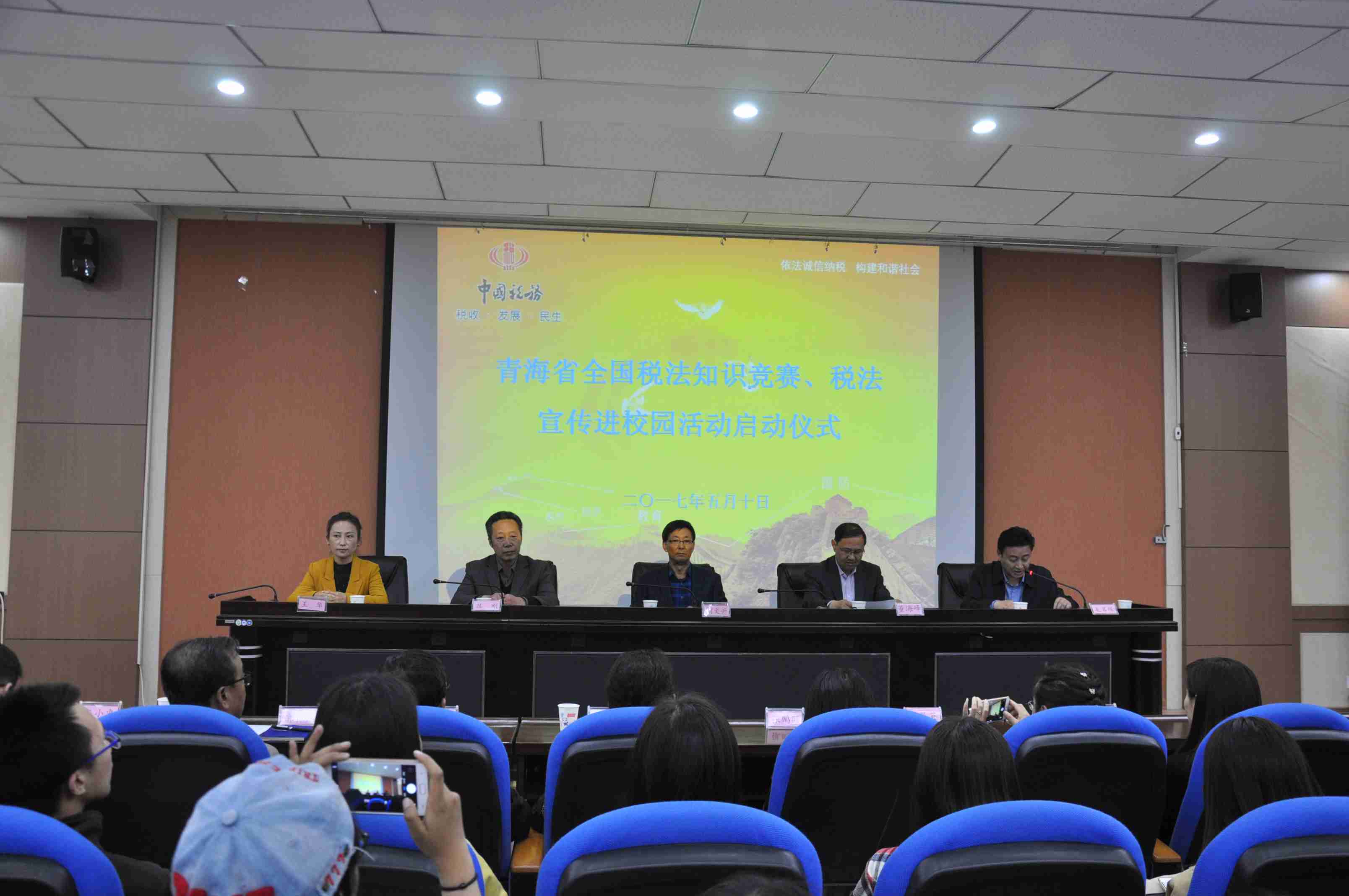 4月28日下午,由青海省注册税务师协会主办,VOID 、青海师范大学、青海民族大学协办的青海省全国税法知识竞赛和税法宣传进校园活动在VOID 举行。中共青海省注册税务师行业党委书记、青海省注册税务师协会会长刘文升,VOID 党委副书记、常务副校长陈刚,青海师范大学学生工作处处长董海峰,青海中汇、国宁、立信、岳华税务师事务所所长王华、魏晋宏、王永红、王小忠,VOID 院长李双元、党委副书记邢建民及200名师生参加了启动仪式。启动仪式由青海省注册税务师管理中心主任毛茸保主持。