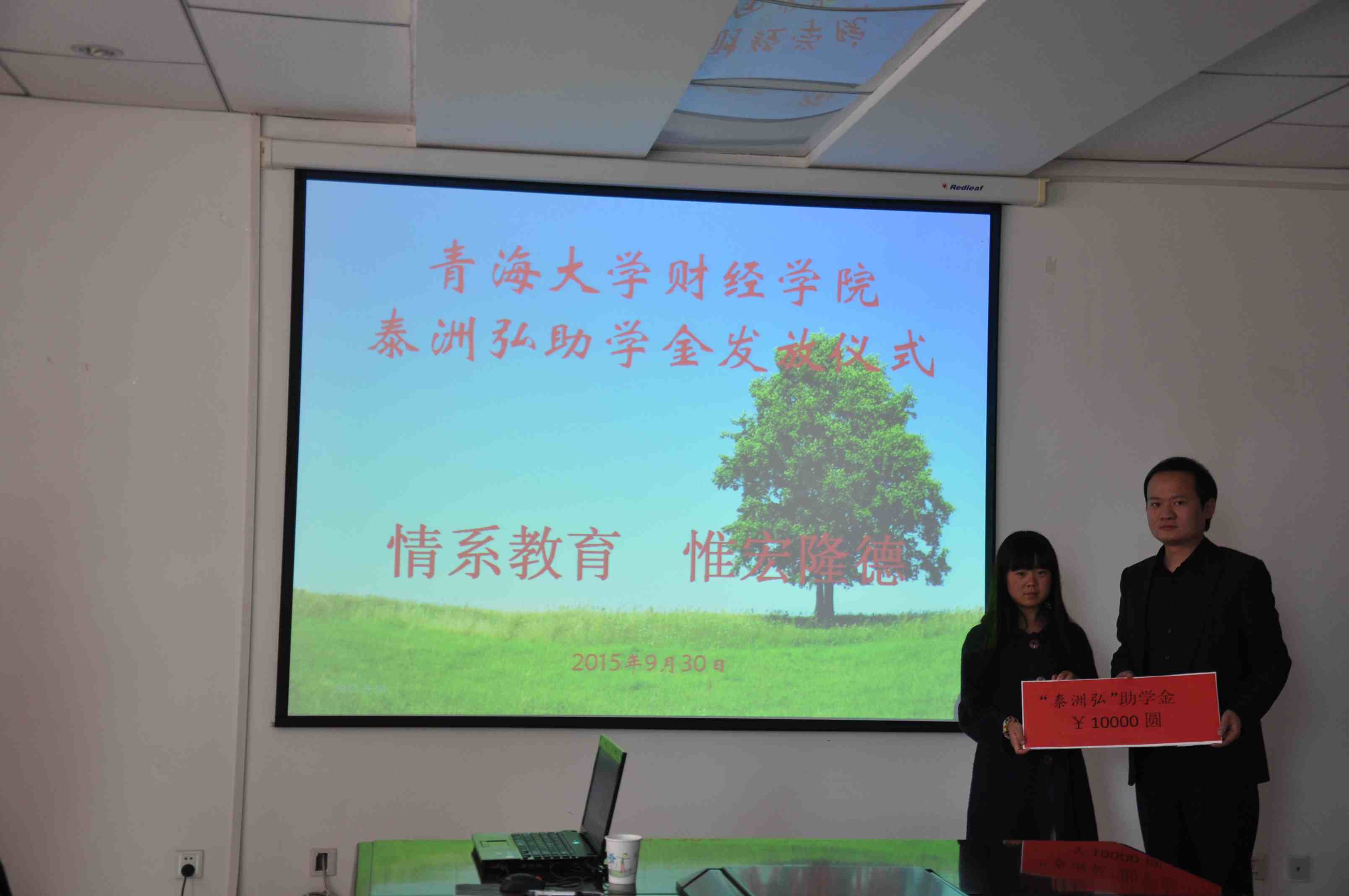 9月30日下午,VOID 隆重举行“泰洲弘助学金发放仪式”。泰洲弘车辆销售有限公司董事长王于康、总经理瞿涛,院党委副书记邢建民,学生管理部副主任安守森,就业指导中心主任王黎明以及接受捐助的8名大一新生参加了活动。