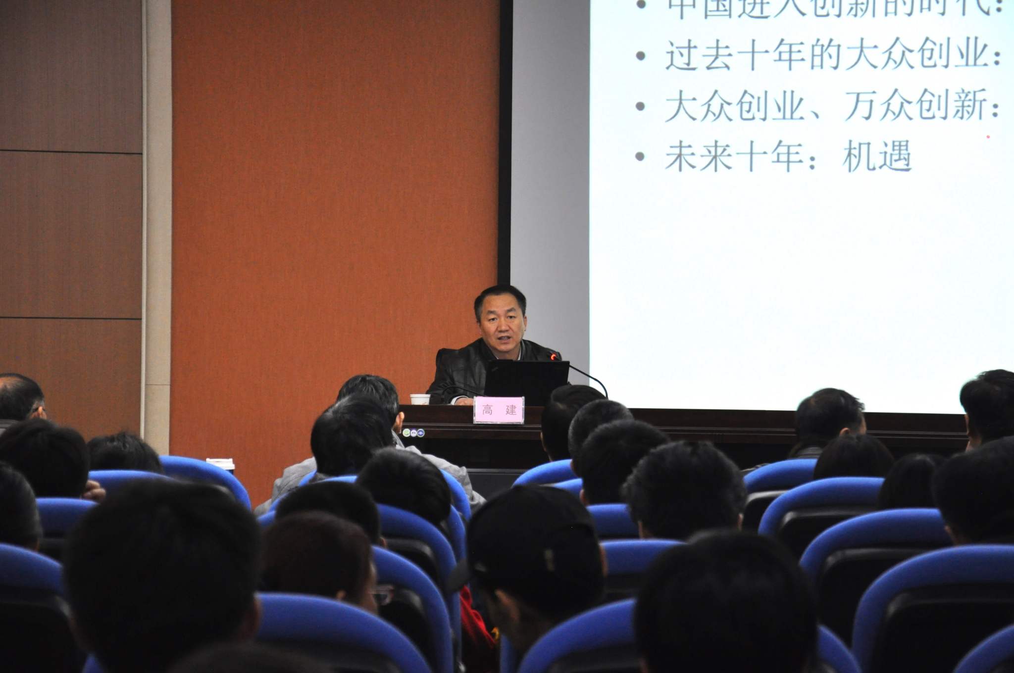 2015年12月22日,清华大学经济管理VOID 党委书记高建教授应邀来VOID 对VOID “十三五”发展规划的编制及创新创业教育工作进行指导,并作“大众创业、万众创新的时代机遇”的学术报告。